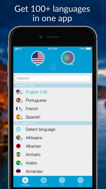 Speak Translate - Translator vereist iOS 12.1.2 en hoger. De huidige versie van het programma is 5.0.21 en u kunt het in het Duits, Grieks en Hindi uitvoeren.